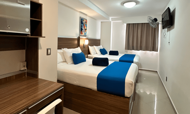 Pensada para familias o estancias prolongadas, esta opción brinda el espacio necesario para descansar con comodidad. Es ideal para quienes acompañan a un familiar o requieren permanecer varios días en la Zona de Hospitales.